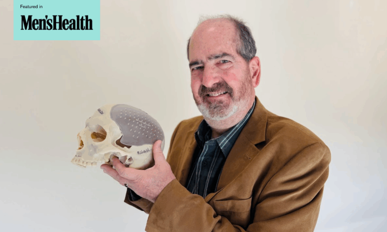 In a recent Men’s Health feature highlighting life-saving medical breakthroughs, MedCAD’s patient-specific cranial implant technology played a central role in one patient’s extraordinary recovery. The article tells the story of Greg Morrison, a New Jersey man who survived multiple brain surgeries—and the loss of nearly half his skull—thanks to advanced neurosurgical care and a custom cranial implant designed by MedCAD.